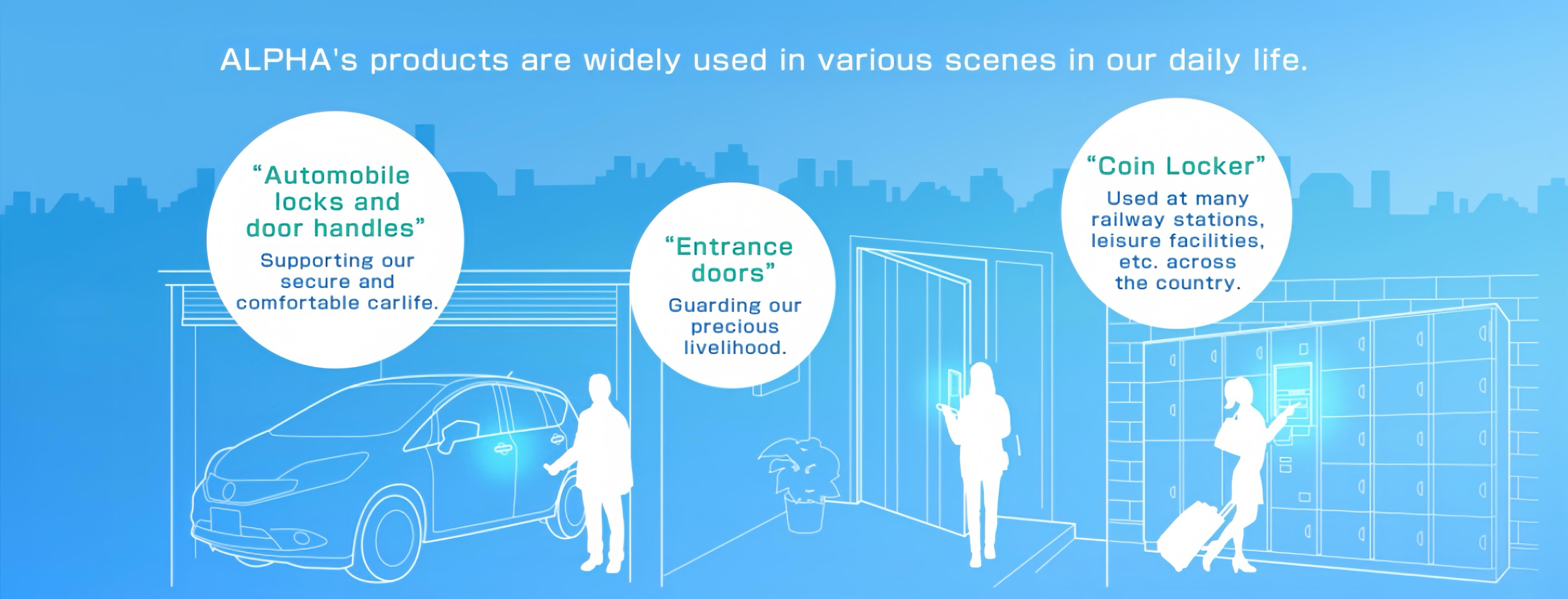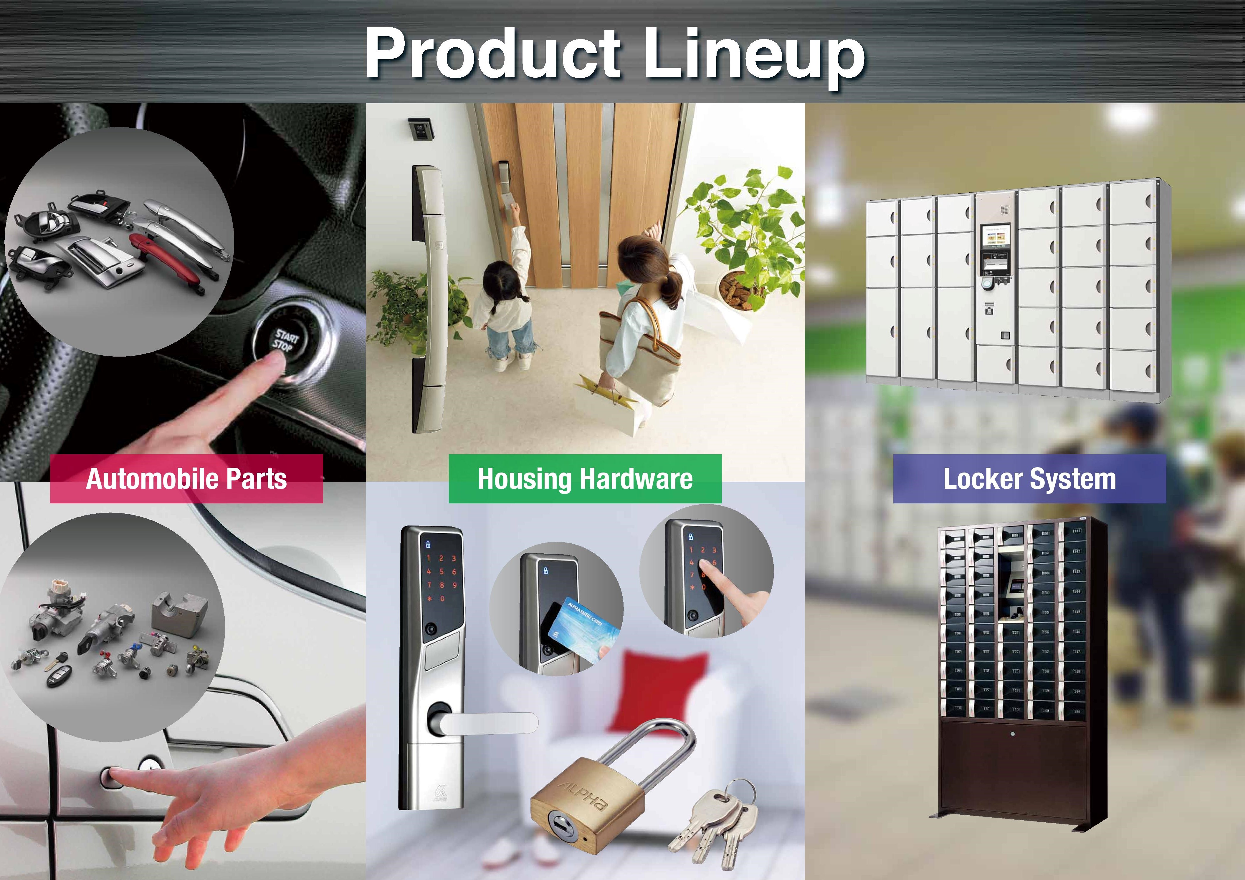 อัลฟ่า คอร์ปอเรชั่น เป็นผู้ผลิตล็อคและกุญแจครบวงจรหนึ่งเดียวในญี่ปุ่นบริษัทก่อตั้งปี พ.ศ. 2466 ผลิตผลิตภัณฑ์ล็อคและกุญแจใน 3 ธุรกิจคือ